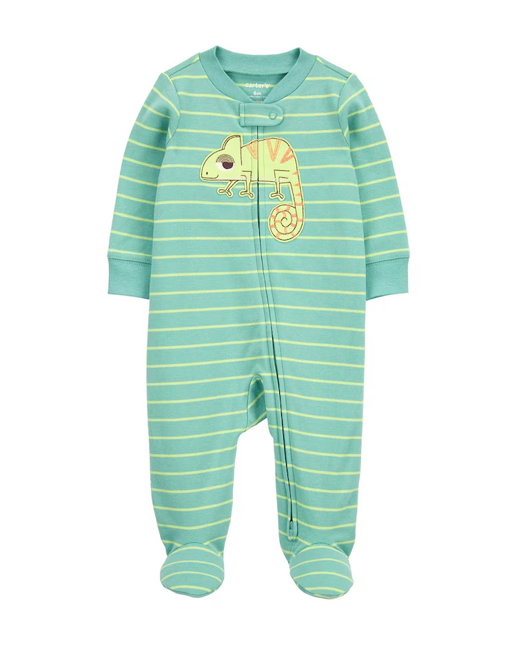 Super fofinho e confortável, o Macacão bebê camaleão verde | Carter’s será a pedida certa para o seu príncipe. Feito de algodão, o macacão conta com fechamento por zíper inverso, possui martingale para garantir proteção e seu grande destaque está em sua estampa listrada e patch de camaleão. Seja descansando ou se divertindo com os papais, a peça é certeira para esses momentos tão lindos e únicos!