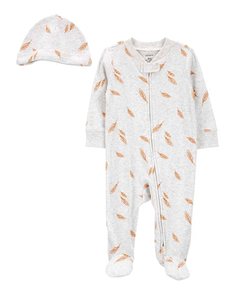 Macacão bebê folhas com touca cinza | Carter’s